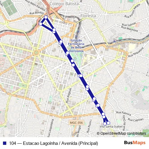 Click here to view the nearest 104 - Estacao Lagoinha / Avenida (Principal) bus stop.