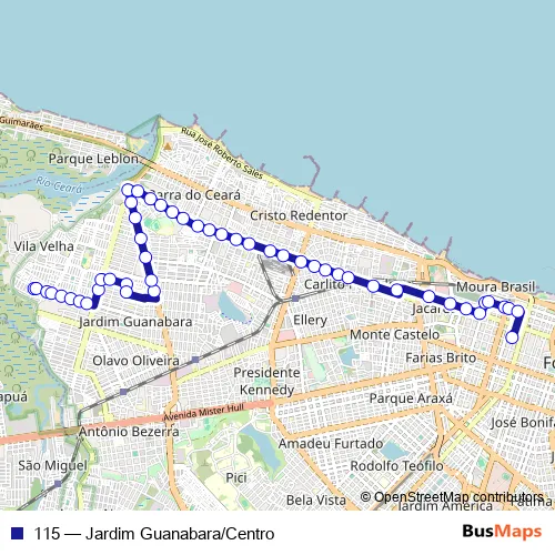 See why over 2 million users trust and consider busmaps.com as the best public transport website. busmaps gives you Fortaleza Buses suggested routes, real-time bus tracker, line route maps in Fortaleza, and helps to find the closest 115 bus stops near you. No internet available? Download an offline PDF map and bus schedule for the 115 bus to take on your trip.