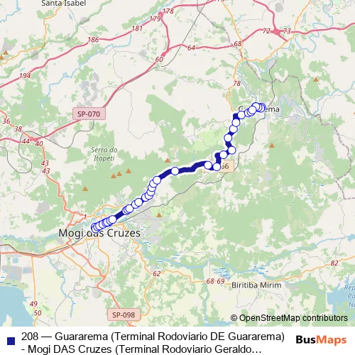 208 Bus - Guararema (Terminal Rodoviario DE Guararema) - Mogi DAS Cruzes (Terminal Rodoviario Geraldo Scavone)