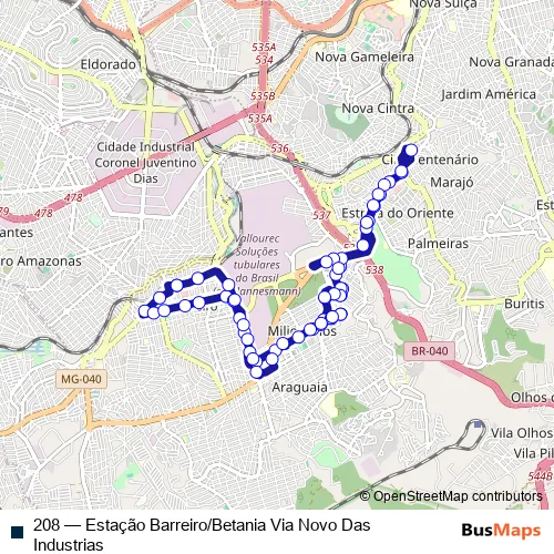 Bus 208 - Estação Barreiro/Betania Via Novo Das Industrias: Full Schedule in Belo Horizonte