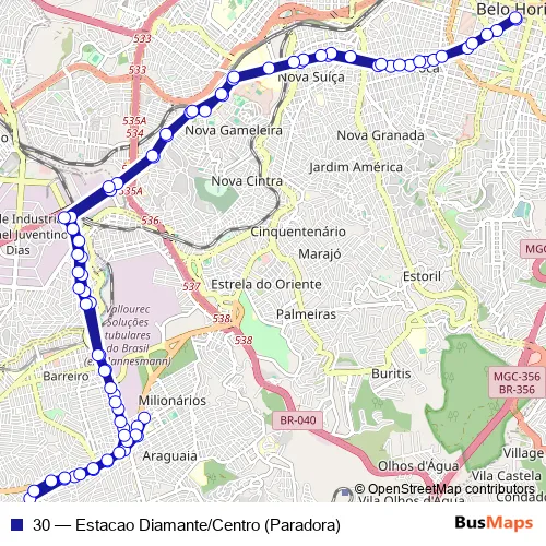 Bus 30 - Estacao Diamante/Centro (Paradora) in Belo Horizonte: Stops & Timetable