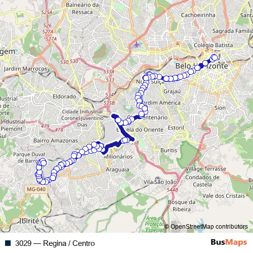 See why over 2 million users trust and consider busmaps.com as the best public transport website. busmaps gives you Belo Horizonte Buses suggested routes, real-time bus tracker, line route maps in Belo Horizonte, and helps to find the closest 3029 bus stops near you. No internet available? Download an offline PDF map and bus schedule for the 3029 bus to take on your trip.