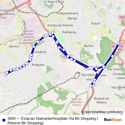 Click here to view the nearest 3050 - Estacao Diamante/Hospitais Via Bh Shopping (Retorno Bh Shopping) bus stop.