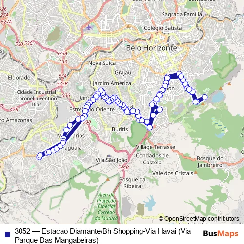 Click here to view the nearest 3052 - Estacao Diamante/Bh Shopping-Via Havai (Via Parque Das Mangabeiras) bus stop.