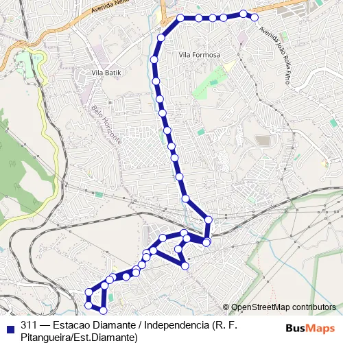 Bus 311 - Estacao Diamante / Independencia (R. F.Pitangueira/Est.Diamante) in Belo Horizonte: Stops & Timetable