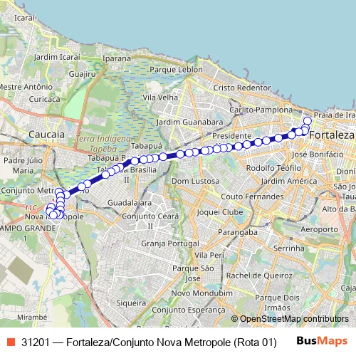 See why over 2 million users trust and consider busmaps.com as the best public transport website. busmaps gives you Fortaleza Buses suggested routes, real-time bus tracker, line route maps in Fortaleza, and helps to find the closest 31201 bus stops near you. No internet available? Download an offline PDF map and bus schedule for the 31201 bus to take on your trip.