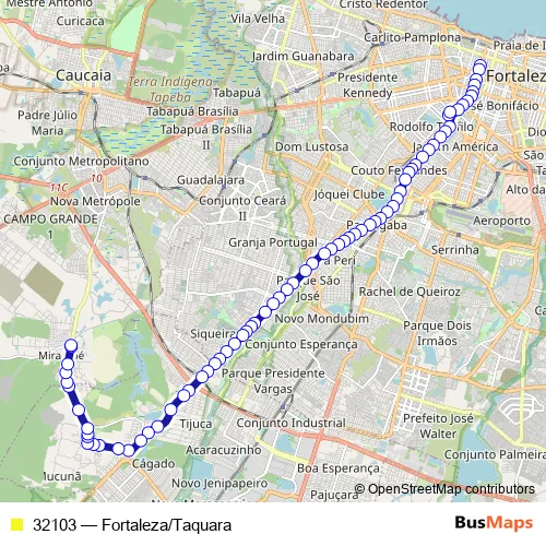 See why over 2 million users trust and consider busmaps.com as the best public transport website. busmaps gives you Fortaleza Buses suggested routes, real-time bus tracker, line route maps in Fortaleza, and helps to find the closest 32103 bus stops near you. No internet available? Download an offline PDF map and bus schedule for the 32103 bus to take on your trip.
