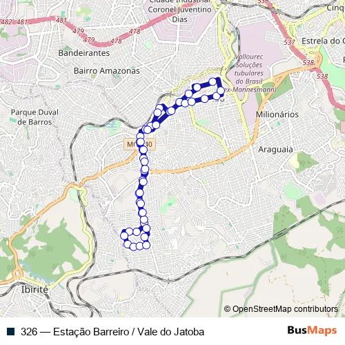 See why over 2 million users trust and consider busmaps.com as the best public transport website. busmaps gives you Belo Horizonte Buses suggested routes, real-time bus tracker, line route maps in Belo Horizonte, and helps to find the closest 326 bus stops near you. No internet available? Download an offline PDF map and bus schedule for the 326 bus to take on your trip.