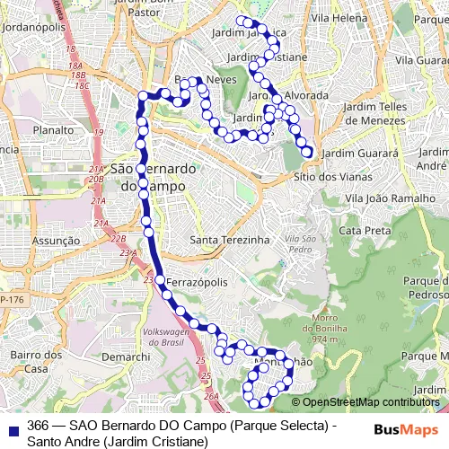 Click here to view the nearest 366 - SAO Bernardo DO Campo (Parque Selecta) - Santo Andre (Jardim Cristiane) bus stop.