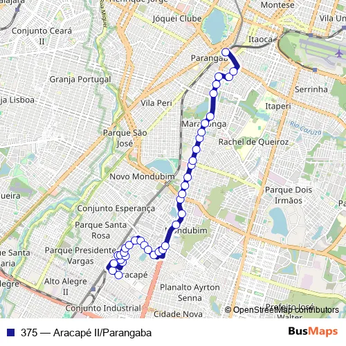 Bus 375 - Aracapé II/Parangaba in Fortaleza: Stops & Timetable