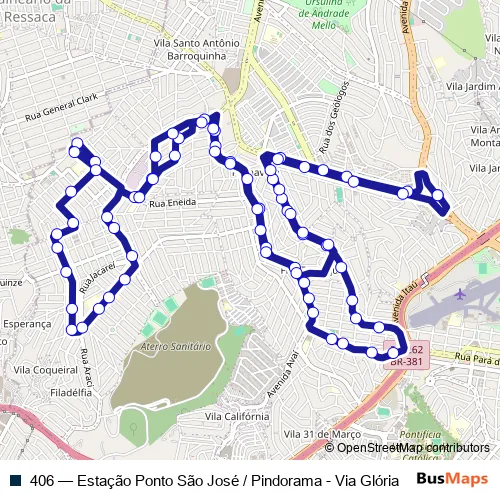 Click here to view the nearest 406 - Estação Ponto São José / Pindorama - Via Glória bus stop.