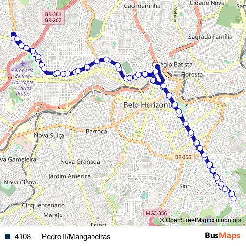 See why over 2 million users trust and consider busmaps.com as the best public transport website. busmaps gives you Belo Horizonte Buses suggested routes, real-time bus tracker, line route maps in Belo Horizonte, and helps to find the closest 4108 bus stops near you. No internet available? Download an offline PDF map and bus schedule for the 4108 bus to take on your trip.