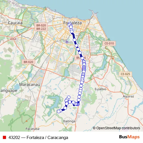 See why over 2 million users trust and consider busmaps.com as the best public transport website. busmaps gives you Fortaleza Buses suggested routes, real-time bus tracker, line route maps in Fortaleza, and helps to find the closest 43202 bus stops near you. No internet available? Download an offline PDF map and bus schedule for the 43202 bus to take on your trip.