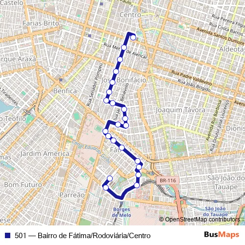 Bus 501 - Bairro de Fátima/Rodoviária/Centro: Full Schedule in Fortaleza