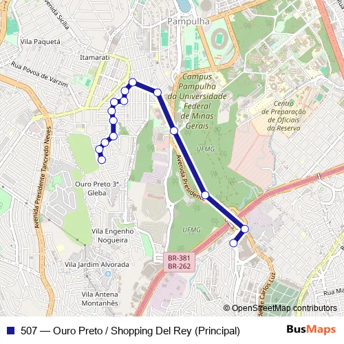 Bus 507 - Ouro Preto / Shopping Del Rey (Principal) Schedule in Belo Horizonte