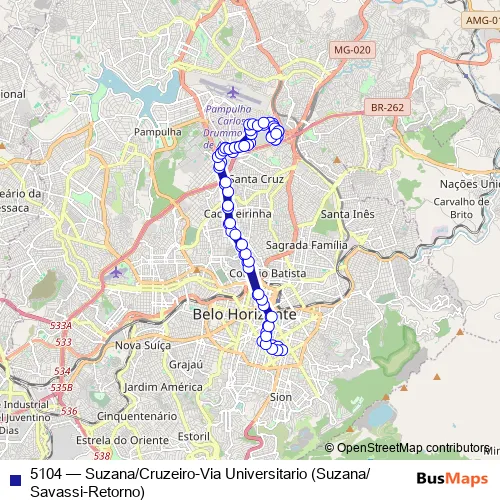 Bus 5104 - Suzana/Cruzeiro-Via Universitario (Suzana/Savassi-Retorno): Full Schedule in Belo Horizonte