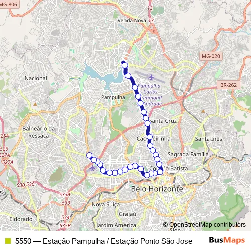 Bus 5550 - Estação Pampulha / Estação Ponto São Jose in Belo Horizonte: Stops & Timetable