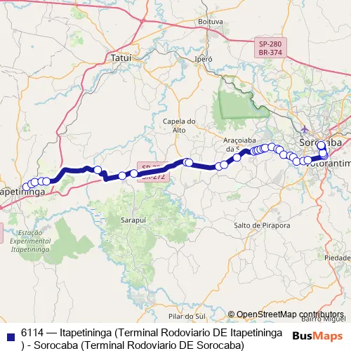Bus 6114 - Itapetininga (Terminal Rodoviario DE Itapetininga) - Sorocaba (Terminal Rodoviario DE Sorocaba) in Sorocaba: Stops & Timetable