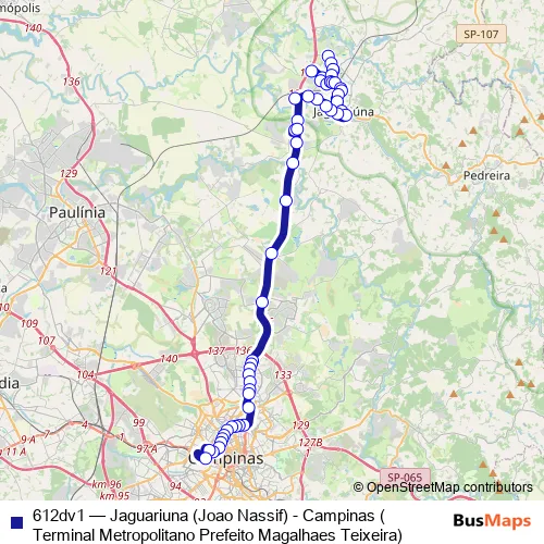 Click here to view the nearest 612dv1 - Jaguariuna (Joao Nassif) - Campinas (Terminal Metropolitano Prefeito Magalhaes Teixeira) bus stop.