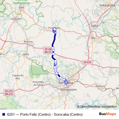 Bus 6201 - Porto Feliz (Centro) - Sorocaba (Centro): Full Schedule in Sorocaba
