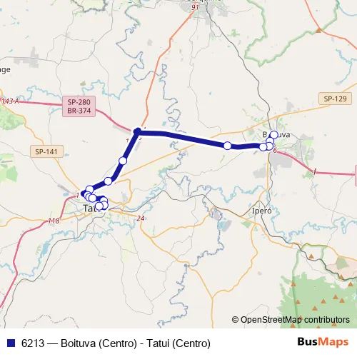 Click here to view the nearest 6213 - Boituva (Centro) - Tatui (Centro) bus stop.