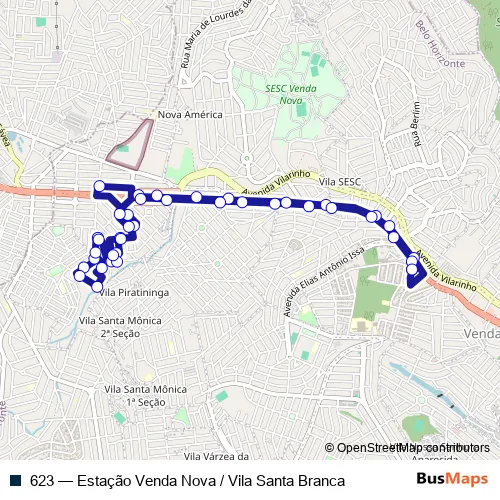 Click here to view the nearest 623 - Estação Venda Nova / Vila Santa Branca bus stop.
