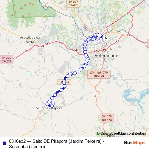 See why over 2 million users trust and consider busmaps.com as the best public transport website. busmaps gives you Sorocaba Buses suggested routes, real-time bus tracker, line route maps in Sorocaba, and helps to find the closest 6316ex2 bus stops near you. No internet available? Download an offline PDF map and bus schedule for the 6316ex2 bus to take on your trip.