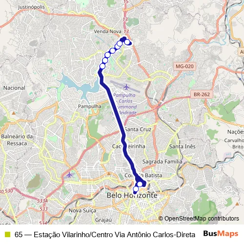 Click here to view the nearest 65 - Estação Vilarinho/Centro Via Antônio Carlos-Direta bus stop.