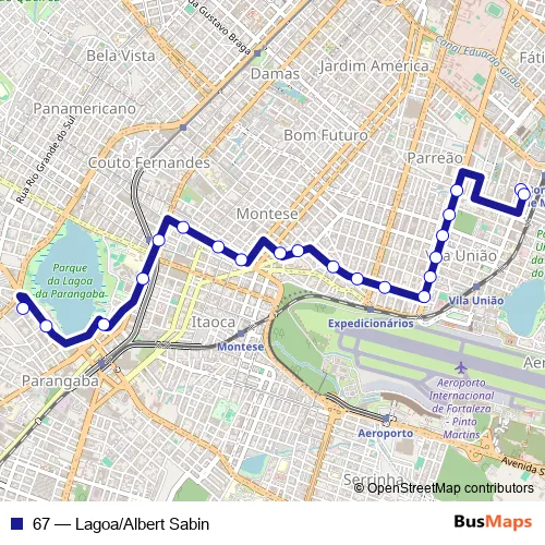 See why over 2 million users trust and consider busmaps.com as the best public transport website. busmaps gives you Fortaleza Buses suggested routes, real-time bus tracker, line route maps in Fortaleza, and helps to find the closest 67 bus stops near you. No internet available? Download an offline PDF map and bus schedule for the 67 bus to take on your trip.
