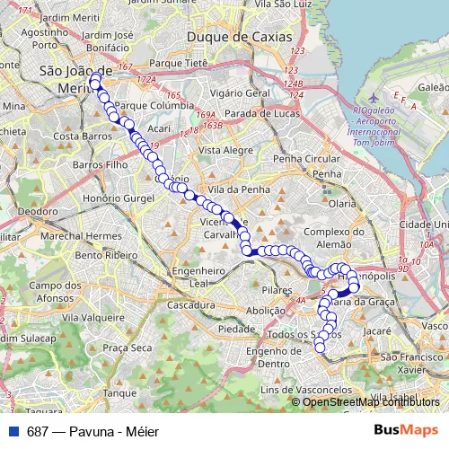Bus 687 - Pavuna - Méier in Rio de Janeiro: Stops & Timetable