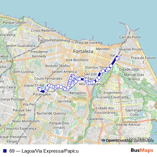 Bus 69 - Lagoa/Via Expressa/Papicu in Fortaleza: Stops & Timetable