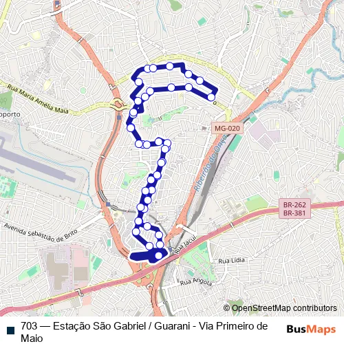 Bus 703 - Estação São Gabriel / Guarani - Via Primeiro de Maio Schedule in Belo Horizonte