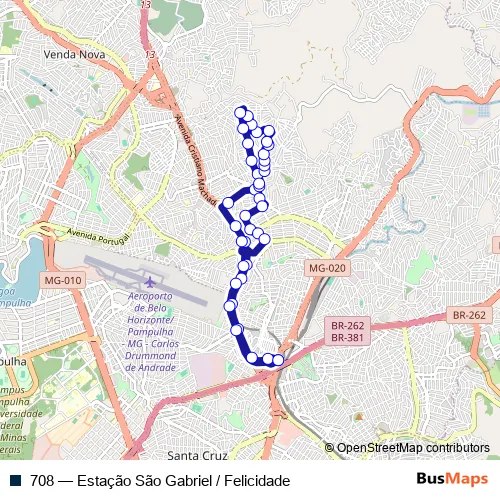 See why over 2 million users trust and consider busmaps.com as the best public transport website. busmaps gives you Belo Horizonte Buses suggested routes, real-time bus tracker, line route maps in Belo Horizonte, and helps to find the closest 708 bus stops near you. No internet available? Download an offline PDF map and bus schedule for the 708 bus to take on your trip.