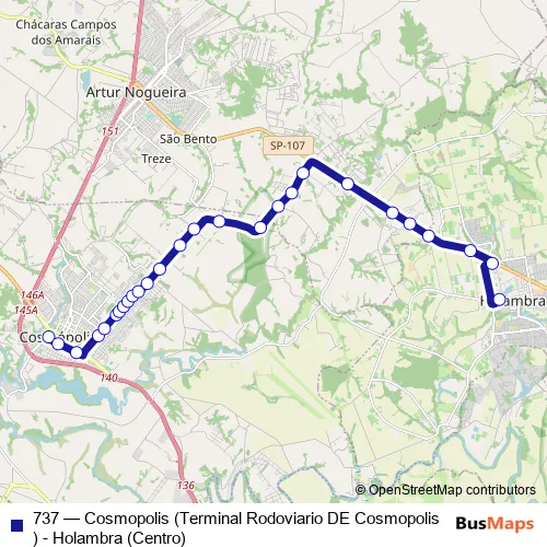 Click here to view the nearest 737 - Cosmopolis (Terminal Rodoviario DE Cosmopolis) - Holambra (Centro) bus stop.