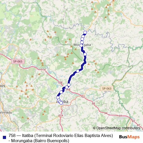 Terminal Rodoviario Elias Baptista Alves - Vila Santa Clara Itatiba - SP 13256-024 Brasil ➞ SP-360 km 1077 norte - Ponto Final do Bairro Buenopolis Morungaba - SP 13260-000 Brasil