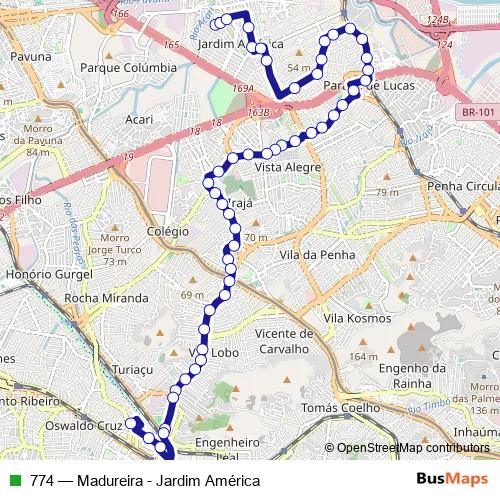 Ponto Final: Jardim América : Linha 774 – Ponto Final: Madureira : Linhas 774, Sv774 e 940