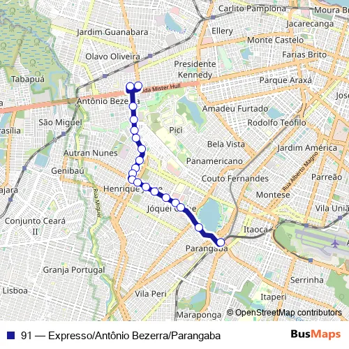 Click here to view the nearest 91 - Expresso/Antônio Bezerra/Parangaba bus stop.