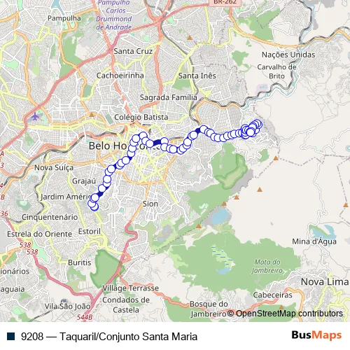 See why over 2 million users trust and consider busmaps.com as the best public transport website. busmaps gives you Belo Horizonte Buses suggested routes, real-time bus tracker, line route maps in Belo Horizonte, and helps to find the closest 9208 bus stops near you. No internet available? Download an offline PDF map and bus schedule for the 9208 bus to take on your trip.