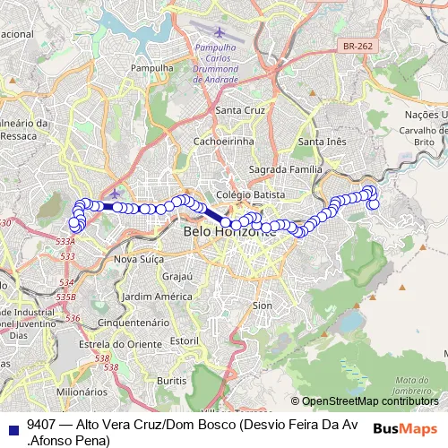 Bus 9407 - Alto Vera Cruz/Dom Bosco (Desvio Feira Da Av.Afonso Pena) in Belo Horizonte: Stops & Timetable