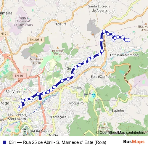 See why over 2 million users trust and consider busmaps.com as the best public transport website. busmaps gives you Braga Buses suggested routes, real-time bus tracker, line route maps in Braga, and helps to find the closest 031 bus stops near you. No internet available? Download an offline PDF map and bus schedule for the 031 bus to take on your trip.
