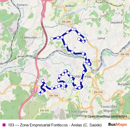 See why over 2 million users trust and consider busmaps.com as the best public transport website. busmaps gives you Santo Tirso Buses suggested routes, real-time bus tracker, line route maps in Santo Tirso, and helps to find the closest 103 bus stops near you. No internet available? Download an offline PDF map and bus schedule for the 103 bus to take on your trip.