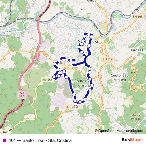 Bus 104 - Santo Tirso - Sta. Cristina in Santo Tirso: Stops & Timetable