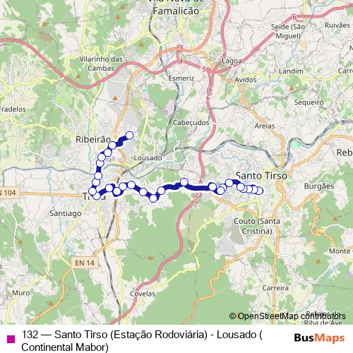 See why over 2 million users trust and consider busmaps.com as the best public transport website. busmaps gives you Santo Tirso Buses suggested routes, real-time bus tracker, line route maps in Santo Tirso, and helps to find the closest 132 bus stops near you. No internet available? Download an offline PDF map and bus schedule for the 132 bus to take on your trip.