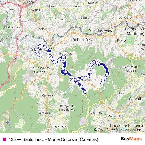 See why over 2 million users trust and consider busmaps.com as the best public transport website. busmaps gives you Santo Tirso Buses suggested routes, real-time bus tracker, line route maps in Santo Tirso, and helps to find the closest 135 bus stops near you. No internet available? Download an offline PDF map and bus schedule for the 135 bus to take on your trip.