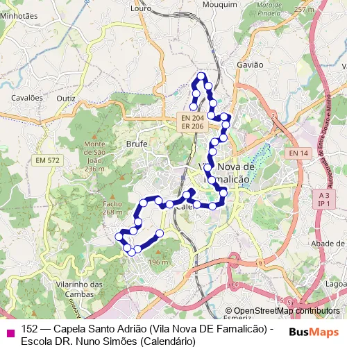 Bus 152 - Capela Santo Adrião (Vila Nova DE Famalicão) - Escola DR. Nuno Simões (Calendário) in Vila Nova de Famalicao: Stops & Timetable