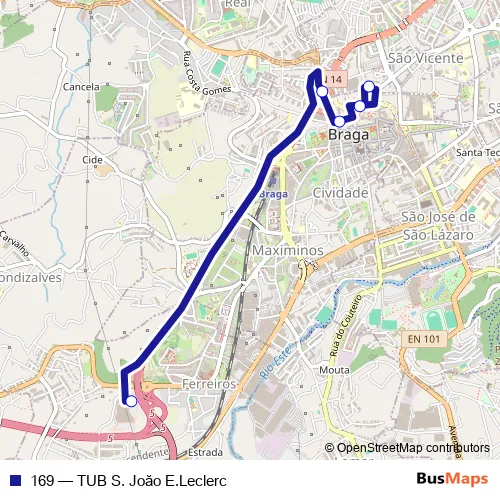 Click here to view the nearest 169 - TUB S. Joăo E.Leclerc bus stop.