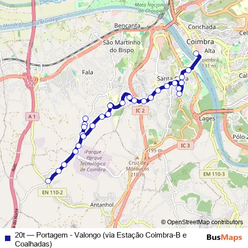 Click here to view the nearest 20t - Portagem - Valongo (via Estação Coimbra-B e Coalhadas) bus stop.