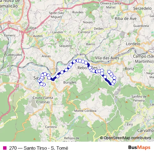 Click here to view the nearest 270 - Santo Tirso - S. Tomé bus stop.