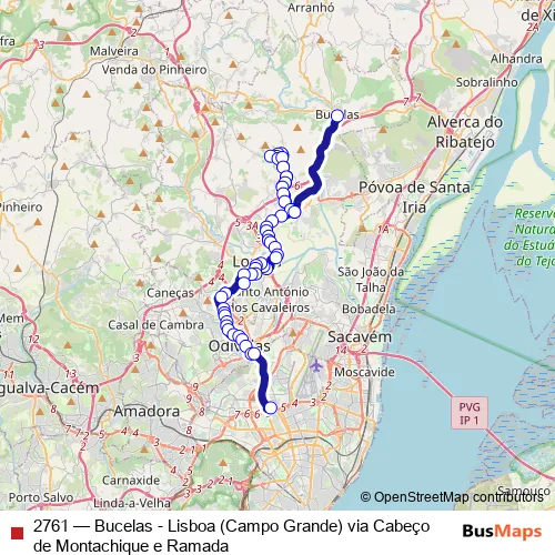 Bus 2761 - Bucelas - Lisboa (Campo Grande) via Cabeço de Montachique e Ramada Schedule in Lisbon