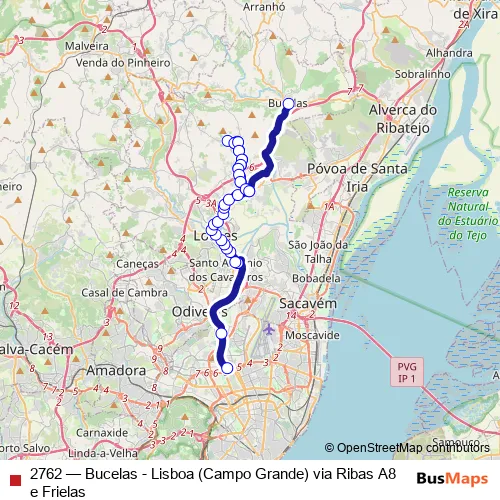 Rodoviária de Lisboa 2762 Bucelas - Lisboa (Campo Grande) via Ribas A8 e Frielas Bus